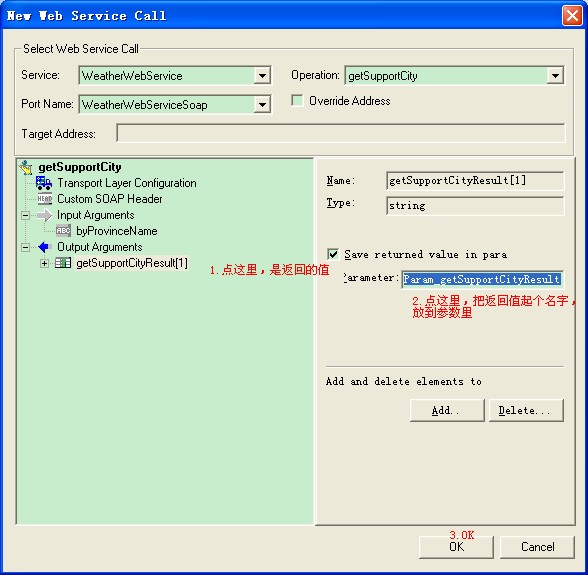 Action(){ int status;lr_start_transaction("send");status=web_service_call( "StepName=getSupportCity_102","SOAPMethod=WeatherWebService|WeatherWebServiceSoap|getSupportCity",//这里是我已经引用了webservice的名称及调用方法"ResponseParam=response","Service=WeatherWebService","ExpectedResponse=SoapResult","Snapshot=t1353067092.inf",BEGIN_ARGUMENTS, "byProvinceName=安徽",//这里是入参,参数名称:byProvinceName,值:安徽。入参和返回值的名称都可以再引用里看见END_ARGUMENTS,BEGIN_RESULT, "getSupportCityResult=result",//这里是返回值,名称:getSupportCityResult,把它放到变量result中END_RESULT,LAST); lr_output_message("Request Status:%d",status); lr_output_message("Result:%s",lr_eval_string("{result}"));//这里把返回值输出,调试webservice的时候用if(strstr(lr_eval_string("{result}"),"合肥")>0){//这里是判断返回值中是否包含“合肥”lr_end_transaction("send",LR_PASS);}else{lr_end_transaction("send",LR_AUTO);}return 0;}#include "lrs.h"Action(){ char *recvbuf;int recvlen=0; int rc;lrs_startup(257); lr_start_transaction("Trans_1"); lr_start_transaction("Conn_1"); rc=lrs_create_socket("socket0", "TCP", "RemoteHost=192.168.1.101:8888", LrsLastArg);//创建Socket连接if (rc != 0 ) { lr_end_transaction("Conn_1", LR_FAIL); lr_end_transaction ("Trans_1", LR_FAIL); return 0; }lr_end_transaction("Conn_1", LR_PASS); //判断socket是否链接成功的事务,0表示创建成功 lrs_send("socket0", "buf0", LrsLastArg); //发送buf0,buf0为在data.ws中定义的发送变量 lrs_receive("socket0", "buf1", LrsLastArg); //接收消息,存放在buf1中,buf1是在data.ws中定义的接收数组,注意数组长度一定要大于等于实际接收长度 lrs_get_last_received_buffer("socket0",&recvbuf,&recvlen);//把Socket最后接收的字节数组,长度放在recvlen中,内容放在recvbuf中lr_output_message("Received:%s",lr_eval_string(recvbuf));if(recvlen>3)lr_end_transaction("Trans_1", LR_PASS);elselr_end_transaction ("Trans_1", LR_FAIL); lrs_disable_socket("socket0", DISABLE_SEND_RECV); lrs_close_socket("socket0"); return 0;}//data.ws;WSRData 2 1send buf0 32"hehehehe"recv buf1 50-1