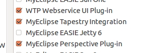 昨天把自己的Myeclipse6.6插件装好了 做了一些优化,在startup and shutdown中将一大堆的EASIE开头的启动项给删除掉了。但是在今天打开Myeclipse的时候却出现了: