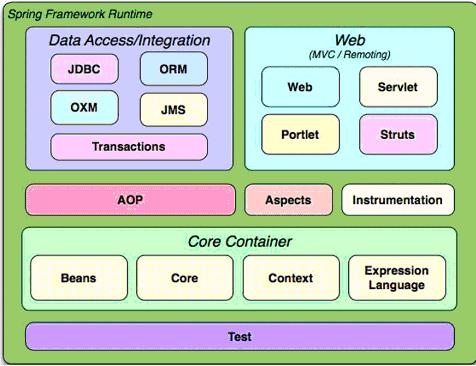 ●Web/Remoting模块:Web/Remoting模块包含了Web、Web-Servlet、Web-Struts、Web-Porlet模块。