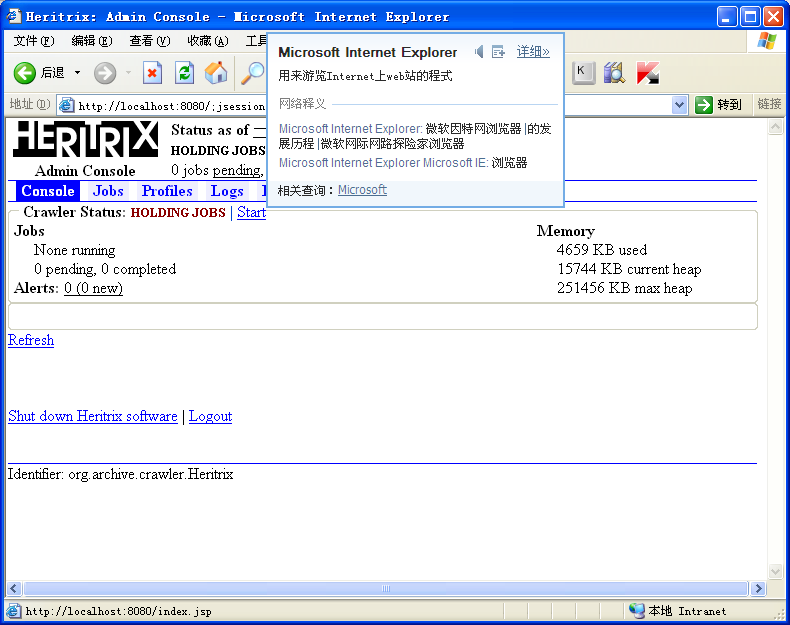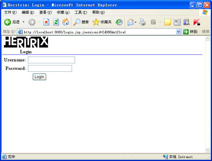 输入用户名和密码即可登录到Heritrix的WebUI页面