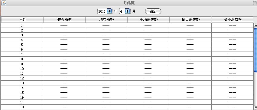 酒店管理系统之月结帐界面(swing)