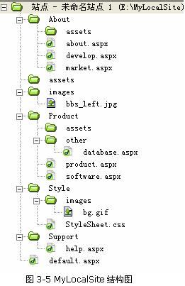 例如在图3-5时,建立指向About文件夹下的about.aspx的链接为<a href="/about/about.aspx">建立指向database.aspx的链接为<a href="/product/other/database.aspx">另外,如果指向的是主页可以写成<a href="/">或者<a href="/default.aspx">