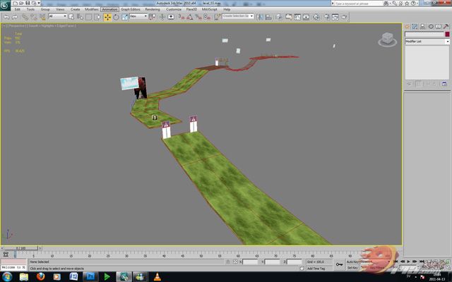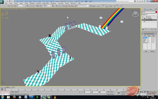 下面,我们直接进入max环节,创建一个地形,设置属性,然后导出为level.f3d.然后启动game.swf 这个场景就加载进来了,开着小车随便跑。做一些动画呀也是有可能的。
