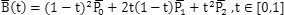 二次贝塞尔曲线通常以如下方式构建,给定二维平面上的固定点P0,P1,P2,用B(t)表示该条曲线