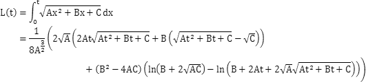 根据这个公式,求得贝塞尔曲线的长度公式L(t)