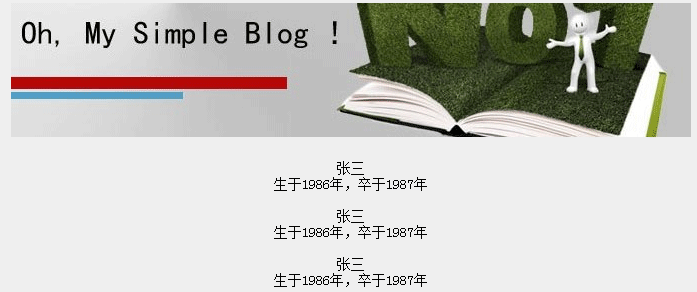 private TextField description;public String list() throws Exception {Reference<User> r = new Reference<User>();r.set(this);List<Reference<User>> list = new ArrayList<Reference<User>>();list.add(r);list.add(r);list.add(r);return toView(list);}<html><head><meta http-equiv = "content-type" content = "text/html; charset=GBK" /><title>#abstract title</title><link rel="stylesheet" type="text/css" href="/resources/style.css" /></head><body><div align="center"><img src="/resources/banner.jpg" /></div><div align="center" id="box">#abstract content</div></body><script defer type="text/javascript" src="/resources/script.js"></script></html>