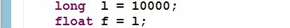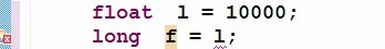 其中值得注意的是long 和float类型的转换。long 是64个byte 而float是