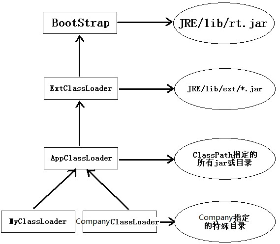 1、Java虚拟机中可以安装多个类加载器,系统默认三个主要的类加载器,每个类加载器特定位置的类:BootStrap,ExtClassLoader,AppClassLoader