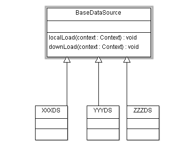 DataSource代表了界面上所需数据的来源,提供加载,操作,保存数据的方法。BaseDataSource作为基类,定义了一些抽象方法让子类实现。后来子类要完成一个判断,要是有网络连接就优先使用网络下载,如果没有网络连接再使用本地数据。于是在子类中出现这样的代码: