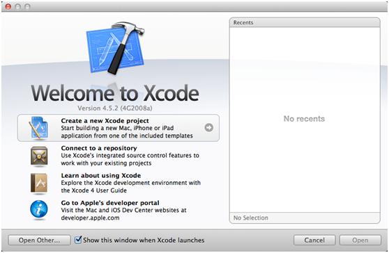 下面来看怎么在XCode中创建项目,首先打开XCode: