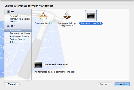 这里我们选择Command Line Tool,也就是控制台的程序,点击Next继续: