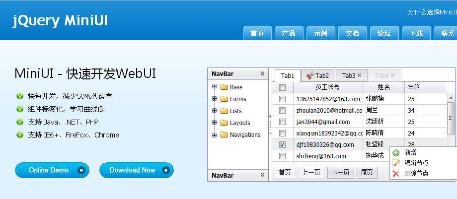 【一】jQuery 近期推出UI框架 : jQuery MiniUI - 快速开发WebUI。