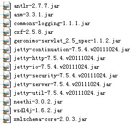 package com.cxf.ws.service;import javax.jws.WebService;@WebServicepublic interface HelloWorld {public String sayHello(String name);}package com.cxf.ws.service.impl;import javax.jws.WebService;import com.cxf.ws.service.HelloWorld;@WebService(endpointInterface="com.cxf.ws.service.HelloWorld",serviceName="HelloWorldImpl")public class HelloWorldImpl implements HelloWorld{@Overridepublic String sayHello(String name) {return "hello,"+name+"!";}}package com.cxf.ws.app;import javax.xml.ws.Endpoint;import com.cxf.ws.service.HelloWorld;import com.cxf.ws.service.impl.HelloWorldImpl;public class Server {public static void main(String[] args) {//JaxWsServerFactoryBean factoryBean=new JaxWsServerFactoryBean();//factoryBean.setAddress("http://192.168.0.251:9999/CXF-WS-Server");//factoryBean.setServiceClass(HelloWorld.class);//factoryBean.setServiceBean(new HelloWorldImpl());//factoryBean.create();HelloWorld hw=new HelloWorldImpl();Endpoint.publish("http://192.168.0.251:9999/CXF-WS-Server", hw);System.out.println("发布成功!");}}package com.cxf.ws.app;import com.cxf.ws.service.HelloWorld;import com.cxf.ws.service.impl.HelloWorldImpl;public class Client {/** * @param args */public static void main(String[] args) {// TODO Auto-generated method stubHelloWorldImpl fac=new HelloWorldImpl();HelloWorld hw=fac.getHelloWorldImplPort();String word=hw.sayHello("金聪敏");System.out.println(word);}}