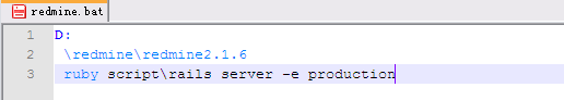 写一个BAT文件命名为 redmine.bat