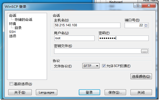 1, 用 WinSCP 登录一个会话.