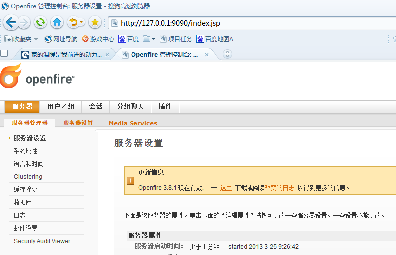 第一,安装好openfire后,启动openfire进入后台。我的登录名:admin 密码:admin.