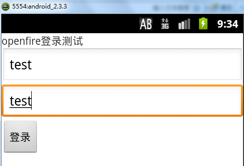 package com.example.openfiretest;import android.os.Bundle;import android.app.Activity;import android.view.Menu;import android.view.View;import android.view.View.OnClickListener;import android.view.Window;import android.widget.CheckBox;import android.widget.EditText;import android.widget.Toast;public class MainActivity extends Activity {private EditText accountEditText;private EditText passwordEditText;public void onCreate(Bundle savedInstanceState) {super.onCreate(savedInstanceState);requestWindowFeature(Window.FEATURE_NO_TITLE);setContentView(R.layout.activity_main);accountEditText = (EditText) findViewById(R.id.username);passwordEditText = (EditText) findViewById(R.id.password);findViewById(R.id.login).setOnClickListener(new OnClickListener() {public void onClick(View v) {String account = accountEditText.getText().toString();String password = passwordEditText.getText().toString();if (account.equals("") || password.equals("")) {Toast.makeText(MainActivity.this, "账号或密码不能为空!",Toast.LENGTH_SHORT).show();} else {ClientConServer ccs = new ClientConServer(MainActivity.this);boolean b = ccs.login(account, password);// 如果登录成功if (b) {Toast.makeText(MainActivity.this, "登陆成功!",Toast.LENGTH_SHORT).show();// startActivity(new// Intent(LoginActivity.this,MainActivity.class));// MainActivity.account=account;} else {Toast.makeText(MainActivity.this, "登陆失败!",Toast.LENGTH_SHORT).show();}}}});}}package com.example.openfiretest;import org.jivesoftware.smack.ConnectionConfiguration;import org.jivesoftware.smack.XMPPConnection;import org.jivesoftware.smack.XMPPException;import android.content.Context;public class ClientConServer {private static int PORT=5222;private Context context;public ClientConServer(Context context){this.context=context;}public boolean login(String a,String p){ConnectionConfiguration config = new ConnectionConfiguration("192.168.0.124", PORT);/** 是否启用安全验证 */config.setSASLAuthenticationEnabled(false);/** 是否启用调试 */ //config.setDebuggerEnabled(true); /** 创建connection链接 */XMPPConnection connection = new XMPPConnection(config);try {/** 建立连接 */connection.connect();/** 登录*/connection.login(a, p); /** 设置状态 */ Presence presence = new Presence (Presence.Type.available); presence.setStatus("Q我吧"); connection.sendPacket(presence);/** 开启读写线程,并加入到管理类中*///ClientSendThread cst=new ClientSendThread(connection);//cst.start();//ManageClientThread.addClientSendThread(a, cst);return true;} catch (XMPPException e) {e.printStackTrace();}return false; }}<uses-permission android:name="android.permission.INTERNET" />
