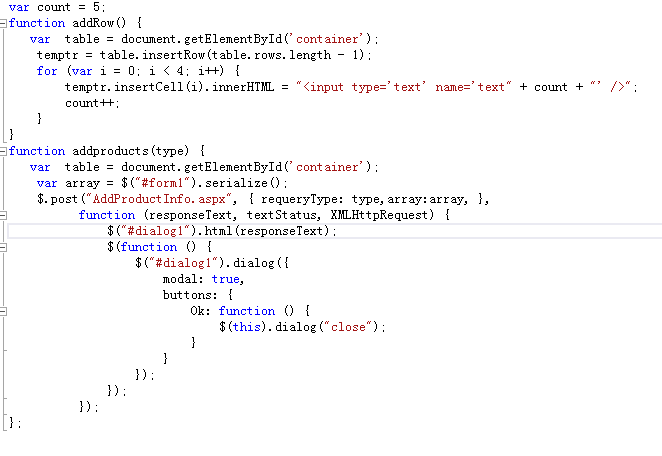$.post("AddProductInfo.aspx",array,function(result){//直接把追加值之后的Json数组传过去就好了