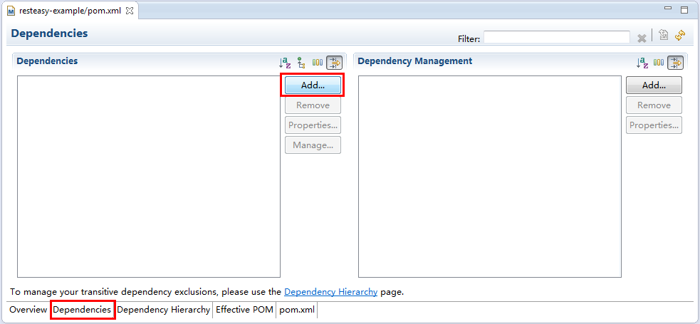 2.1 用Maven POM Editor 打开pom.xml文件,在Dependencies中添加依赖包