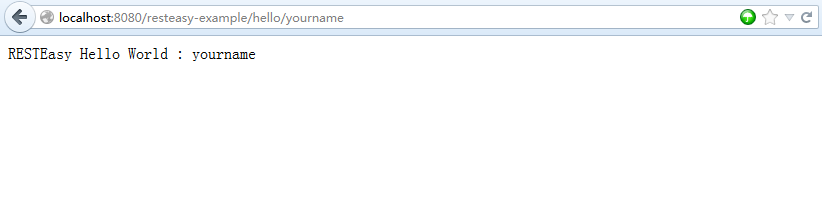 在这个例子中,web请求“http://localhost:8080/resteasy-example/hello”将匹配HelloWorldRestService,“http://localhost:8080/resteasy-example/hello/{任意值}”将匹配到方法参数@PathParam 参数