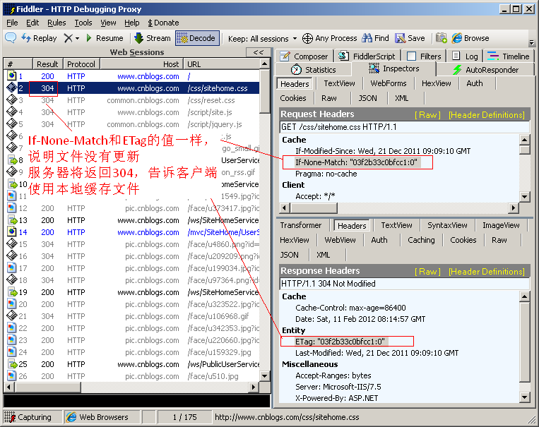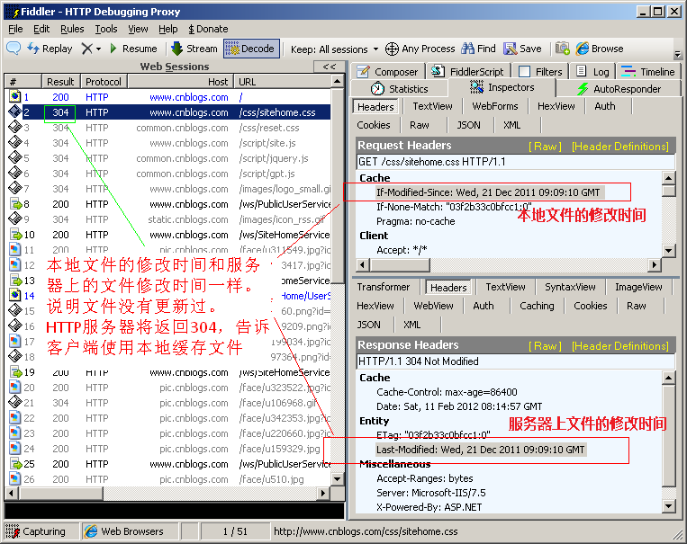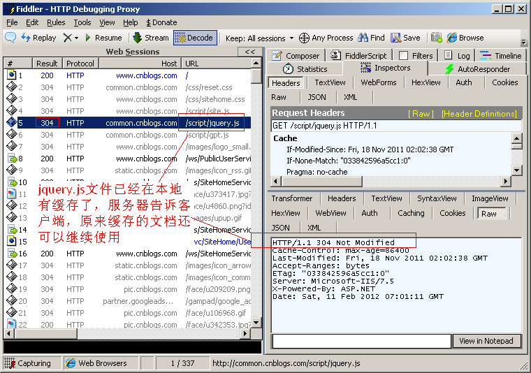 例如打开博客园首页, 发现很多Response 的status code 都是304