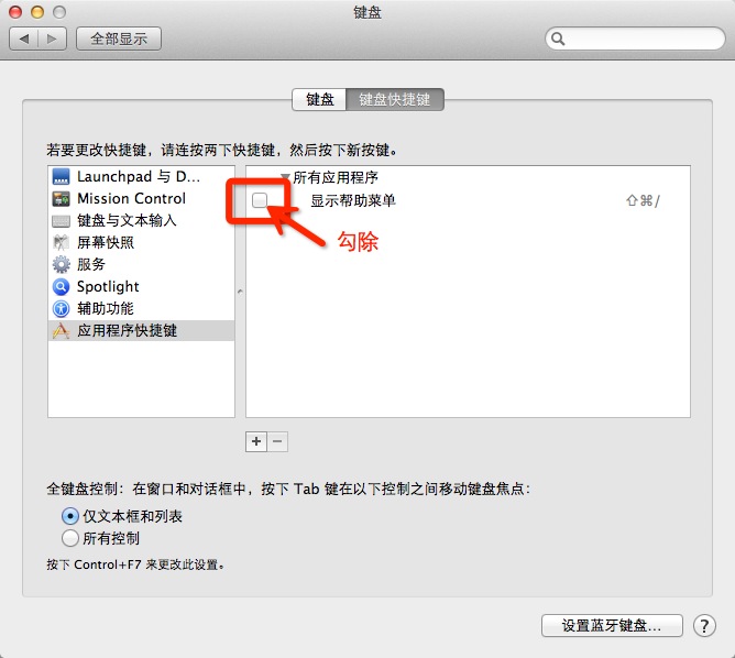 Mac eclipse设置多行注释 Mac中eclipse 自带的多行注释快捷键被系统占用了,不启作用;需要去掉系统快捷键,在做适当的设置才能用;1. 去除系统设置快捷键2. 按照红框中的设置(快捷键可自定义)