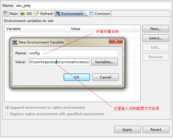 ${config} 是环境变量,在Eclipse中的Maven Web项目可以这么设置: