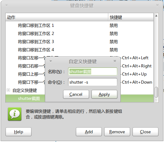 linux下使用shutter来截图 之前截图都是用qq的截图,但是有时候确实不想启动qq.看了下shutter的评价还可以.用了的时候发现shutter自己的快捷键设置是不起作用的.我只好该了系统的快捷键.