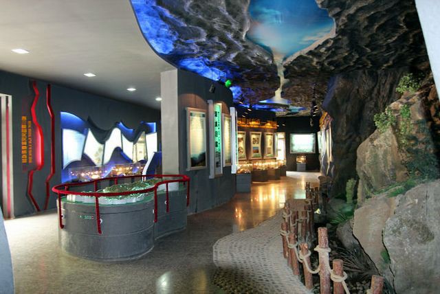 野三坡地质博物馆 野三坡地质博物馆位于百里峡景区售票处附近,馆内以多种形式展示了整个野三坡世界地质公园的历史与现在,包括30亿年前的历史、中间经历的地壳发展史、现今多种地质构造以及岩石实物、丰富的矿藏、涞水智人的化石模型等。同时,还有放映厅播出视频、抢答器来模拟知识问答。