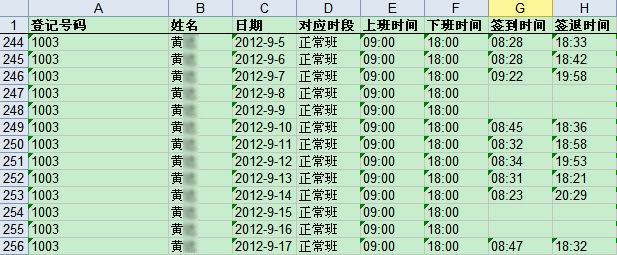 现在公司改革了,早退要扣一天的工资,如果上班或下班没有打卡要扣三天的工资,坑爹啊!还好人事会把指纹打卡记录的Excel发邮件给我们,如果发现有不对就马上去沟通,想办法解决,不然一天几百块伤不起啊!