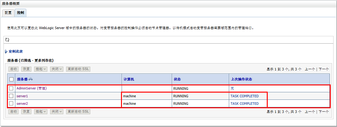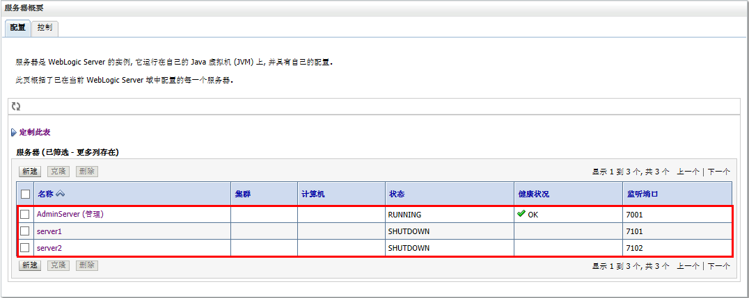 至此,服务器、集群、计算机都已经配置成功,选择“环境”-》服务器,最后结果如图所示: