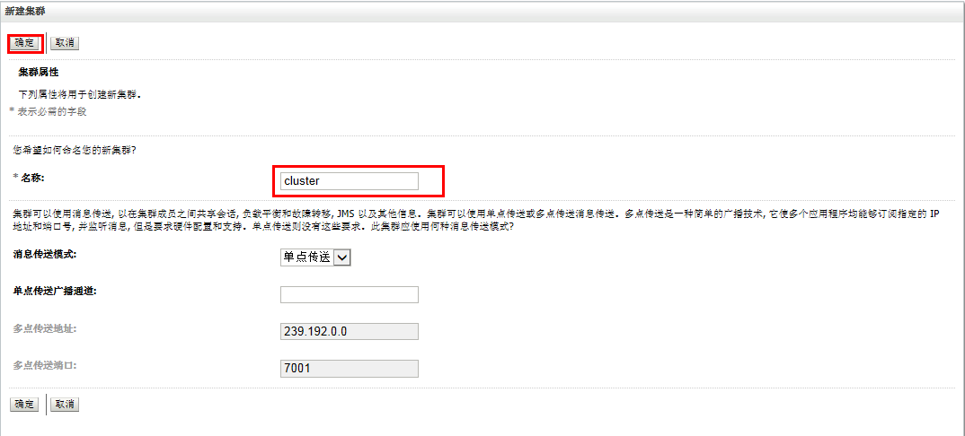 在新建界面中,输入集群的名称cluster,并点击“确定”即可,如图所示: