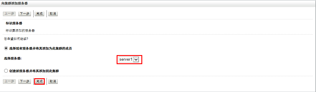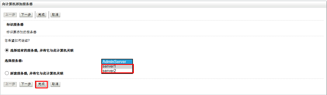 选择服务器server1,直接点击“完成”,返回服务器列表。