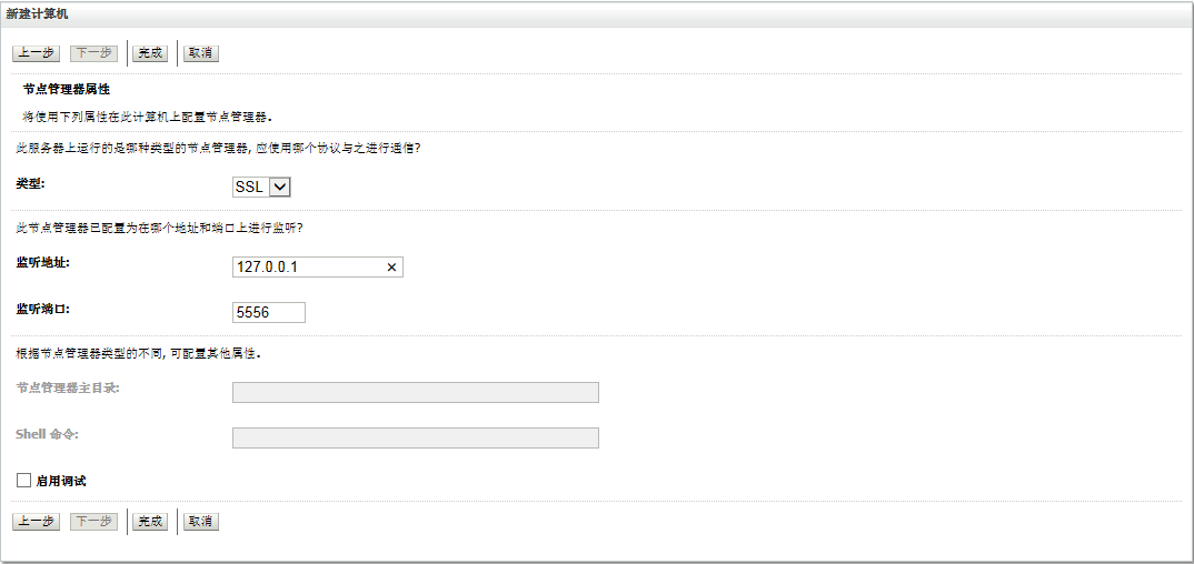 修改“监听地址”为127.0.0.1,其它保持不变,点击“完成”,如图所示: