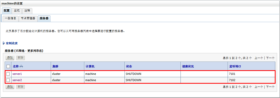 继续按照上述步骤添加server2,点击“完成”。最后如图所示: