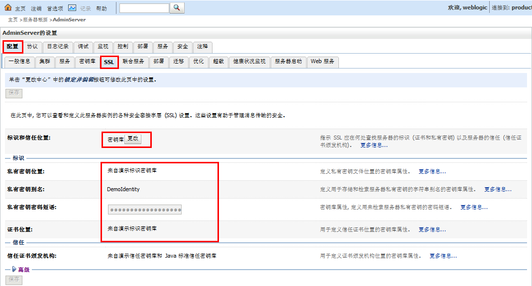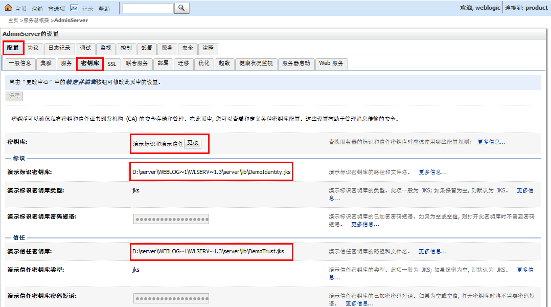 2、观察weblogic方便开发部署提供的演示秘钥库