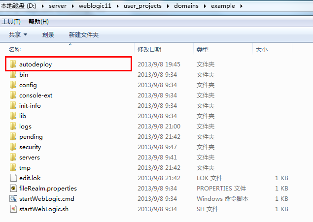 上一篇http://dead-knight.iteye.com/blog/1938629创建domain之后,domain所在目录有个文件夹是autodeploy,如图所示: