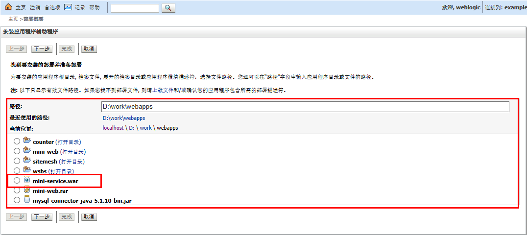 <app-deployment> <name>_appsdir_mini-web_dir</name> <target>AdminServer</target> <module-type>war</module-type> <source-path>autodeploy\mini-web</source-path> <security-dd-model>DDOnly</security-dd-model> <staging-mode>nostage</staging-mode> </app-deployment> <app-deployment> <name>mini-service</name> <target>AdminServer</target> <module-type>war</module-type> <source-path>D:\work\webapps\mini-service.war</source-path> <security-dd-model>DDOnly</security-dd-model> </app-deployment>