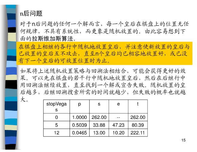 从上面的两个PPT截图中可以看出,拉斯维加斯算法思想去解决N皇后时所花费的时间不少。