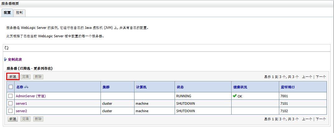 6)在服务器列表中启动三个server