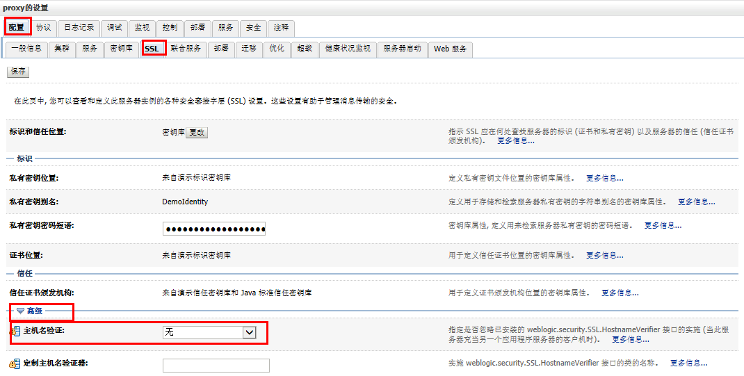 3)配置SSL的主机名验证为“无”
