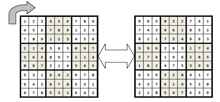 public int[][] getArrayWithDiagonalSymmetry() {int[][] result = new int[9][9];for (int i = 0; i < 9; i++) {for (int j = 0; j < 9; j++) {result[i][j] = sampleArray[j][i];}}return result;}