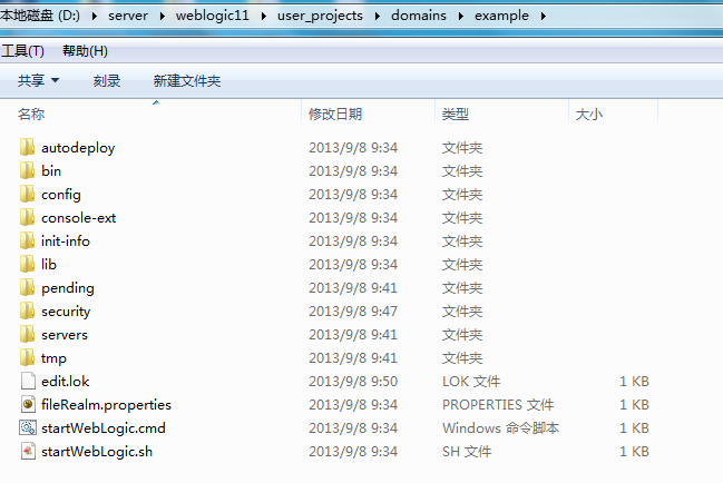 上图显示创建域之后,该域所在目录下面包含的子目录,子目录的用途放在下篇介绍。
