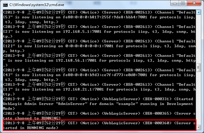 如果是生产模式,启动domain必须输入管理账号、密码。为了提高性能,不会对应用程序进行轮训,而且建议使用原先bea自带的jrockit jdk作为运行的jdk(不过自从被oracle收购之后,安装目录下未提供jrockit jdk了(需要自行下载)。