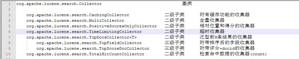 在这之前先分析下TopDocs这个类,这个类的工作原理,其实在后台使用的也是一个收集器,收收集我们检索的结果,通过TopDocsCollector这个基类下面的2个子类收集器,来收集一次我们检索的命中数据。