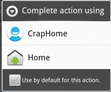 这个activity非常简单,用一个gridview列出系统中所有的launcher,gridview的adapter的getview方法中,对特定的launcher进行处理,显示右上角那个红字