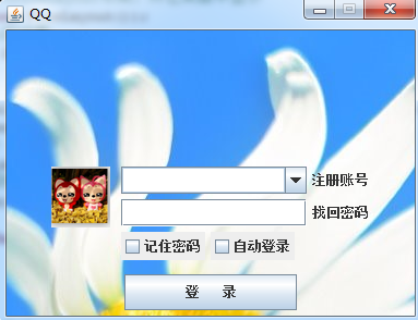 再如上QQ界面,明确事件源是登录按钮之后,就要给该按钮添加对应的监听器,因为发生的是鼠标点击事件,因此给按钮添加鼠标监听器