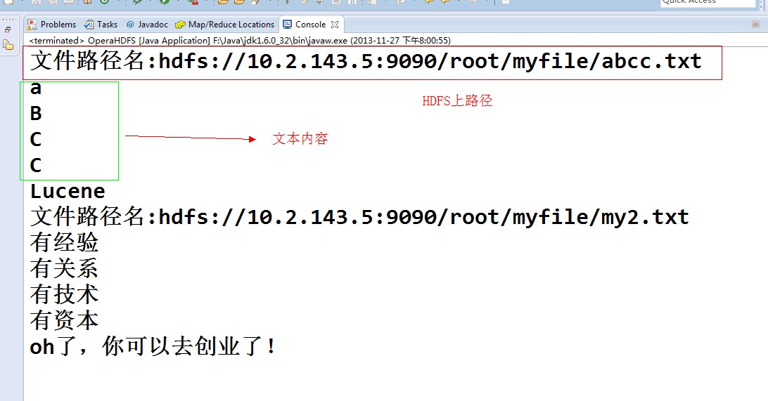 比如有如下的一个小需求,要求我们实现读取HDFS某个文件夹下所有日志,经过加工处理后在写入到HDFS上,或者存进Hbase里,或者存进其他一些存储系统。这时候使用shell的方式就有点麻烦了,所以这时候我们就可以使用编程的方式来完成这件事了,当然散仙在这里使用的是原生的Java语言的方式,其他的一些语言例如C++,PHP,Python都可以实现,散仙在这里不给出演示了,(其实散仙也不会那些语言,除了刚入门的Python)