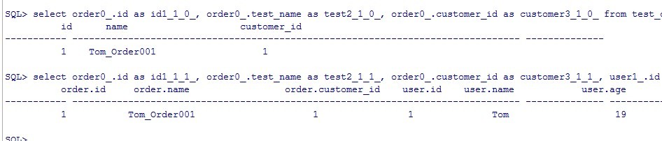 Hibernate: select order0_.id as id1_1_1_, order0_.test_name as test2_1_1_, order0_.customer_id as customer3_1_1_, user1_.id as id1_3_0_, user1_.test_name as test2_3_0_, user1_.test_age as test3_3_0_ from test_order order0_ left outer join test_user user1_ on order0_.customer_id=user1_.id where order0_.id=?