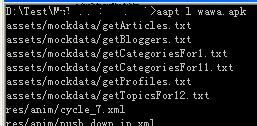1. aapt l[ist] [-v] [-a] file.{zip,jar,apk}